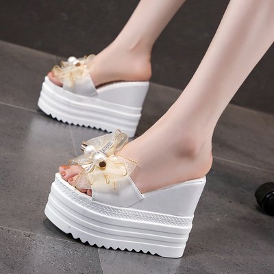 Bow Wedge Heel Soft Bottom Slippers for Women, Sandal & Slipper-RV30057
