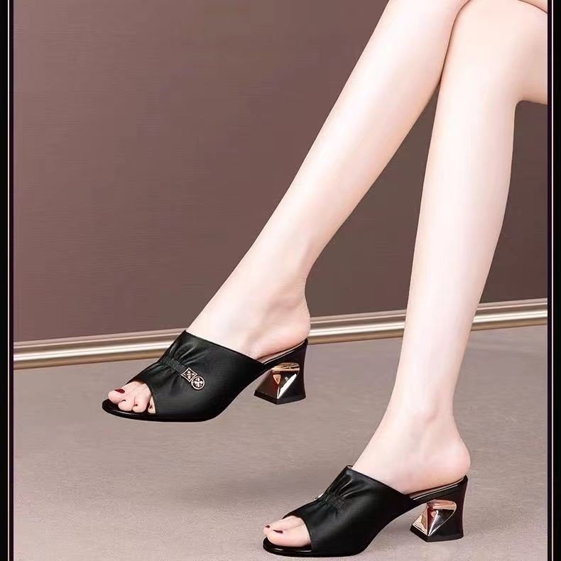 Cool Thin Toe Half-Slip High-Heeled Outer Wear Mid-Slippers For Women, Pencil Heel-RV1312