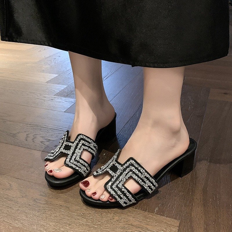 Elegant & Fairy-like Style with Chunky Heel, Non-Slip Slipper For Women, Sandal & Slipper-RV30068