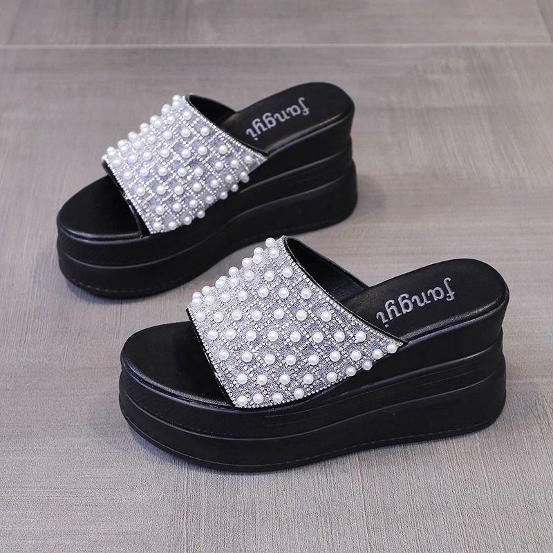 New Korean Style Wedge Rhinestone Pearl Women’s Shoes, Balanced Heel-RV668