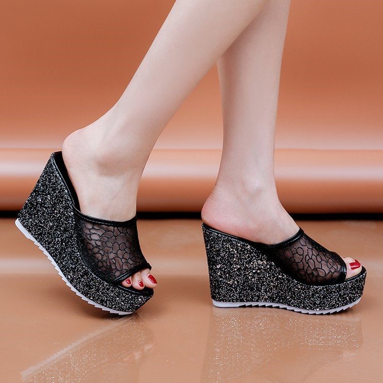 Thick sole, High heel, Mesh flip-flops Shoes For Women, Balanced Heel-RV476