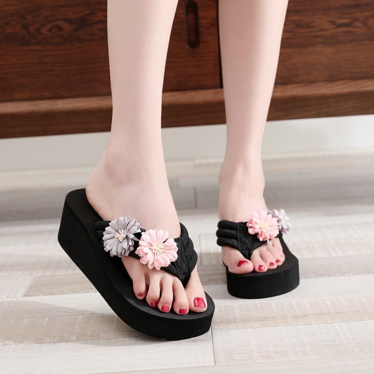 Korean Style Fashionable Flower Outer Wear Seaside Holiday Flip-flops Sandals For Women, Sandal-RV202