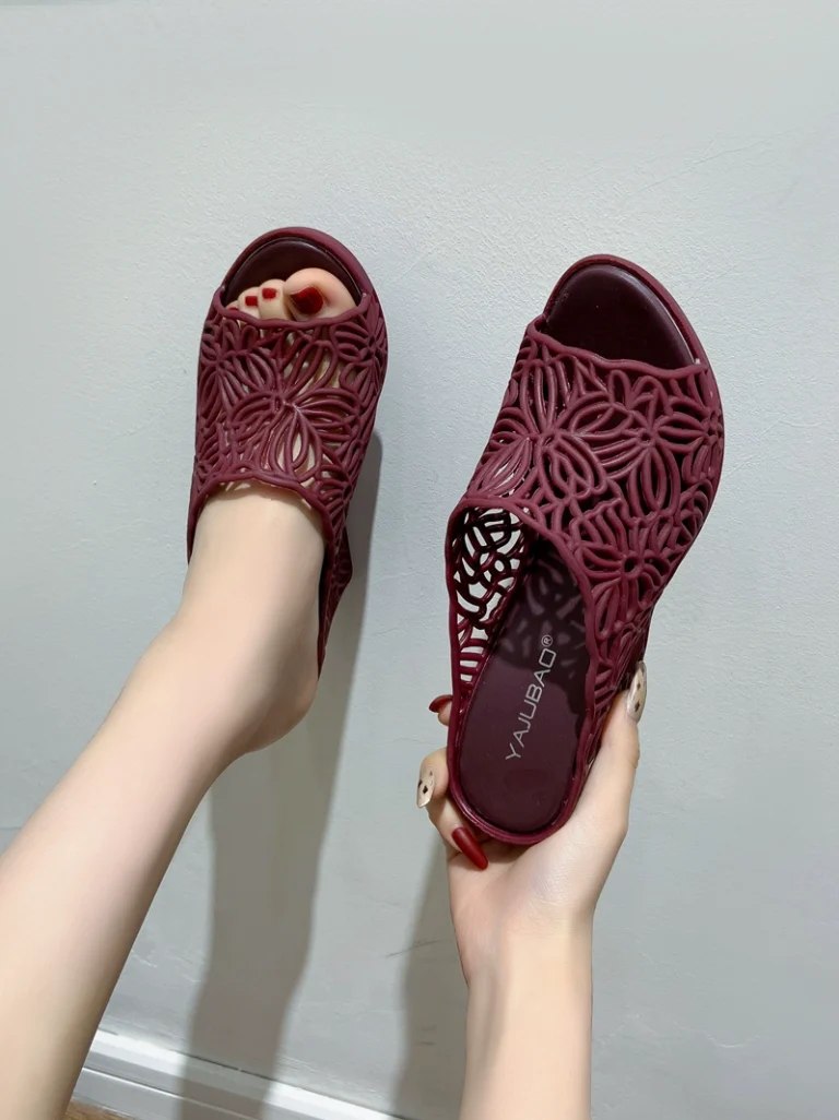 Fishmouth Wedge Sandals Women’s Soft Sole Middle-aged Sandals, Balanced Heel-RV561