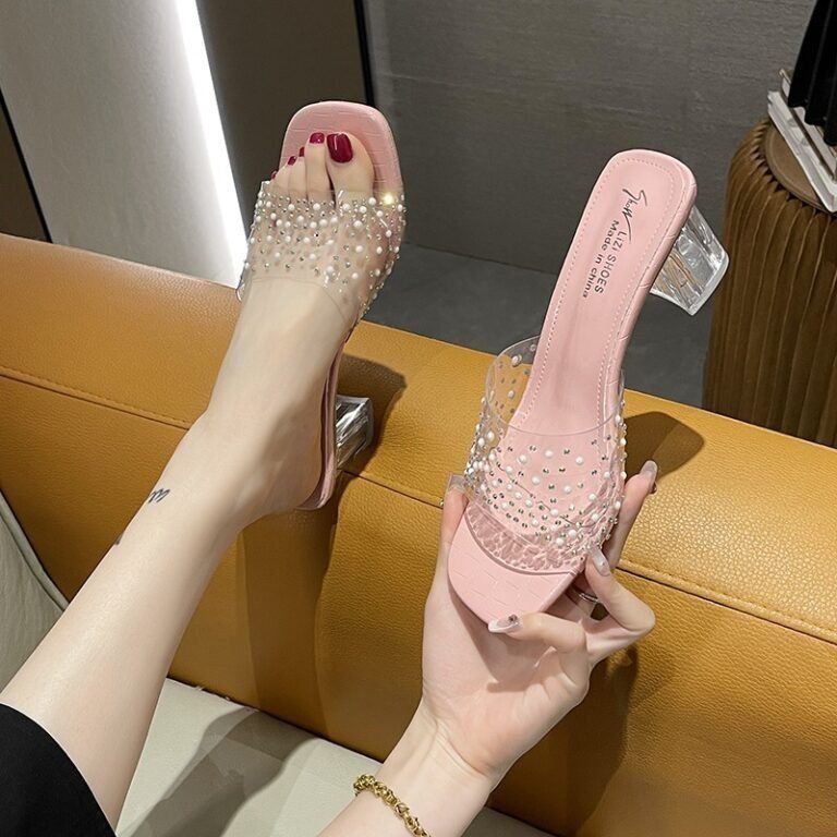 Crystal Heel Women’s Transparent Sandals For Women, Box Heel-RV1457