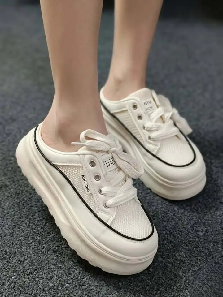 Women’s Korean Style Lace Mesh Inner Elevated Platform Bottom Casual Shoes, Kades-STWR86