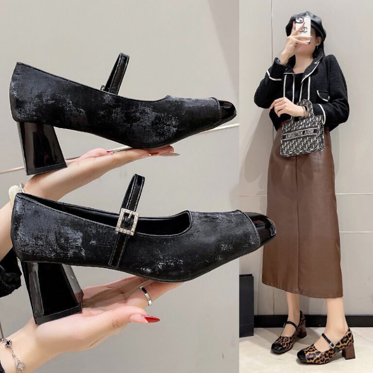 Women’s fashionable shallow mouth chunky heel single strap shoes, Style Shoes – RV2580