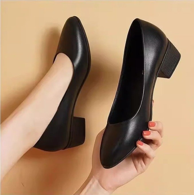Women’s black flat soft-soled chunky heel work shoes For women, Style Shoes-STRV2530