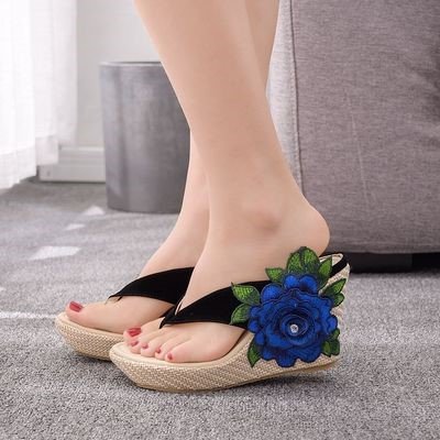 Women’s Flip-Flops Platform Platform Embroidered Slippers Sandals, Balanced Heel-RV338