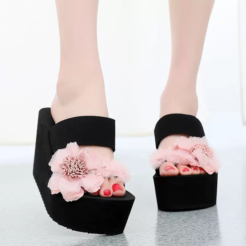 Women’s Ethnic Style High-Heeled Beach Sandals, Balanced Heel-RV655
