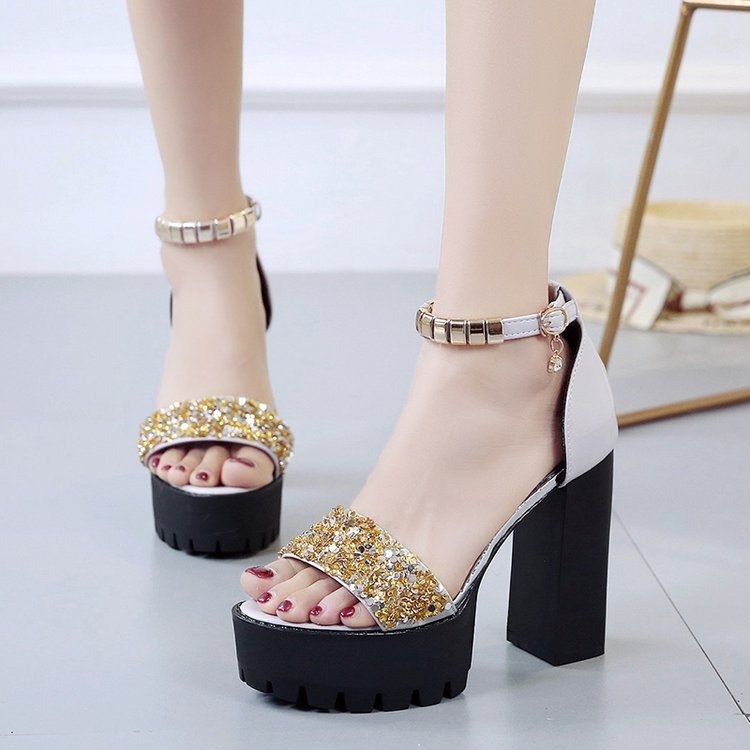 Sequined Platform Sandals trendy open toe Women’s shoes, Box Heel-RV1346