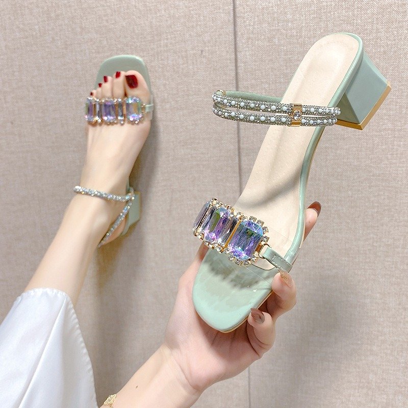 Women’s Chunky Heel Square Toe Open toe Shoes, Box Heel-RV1393