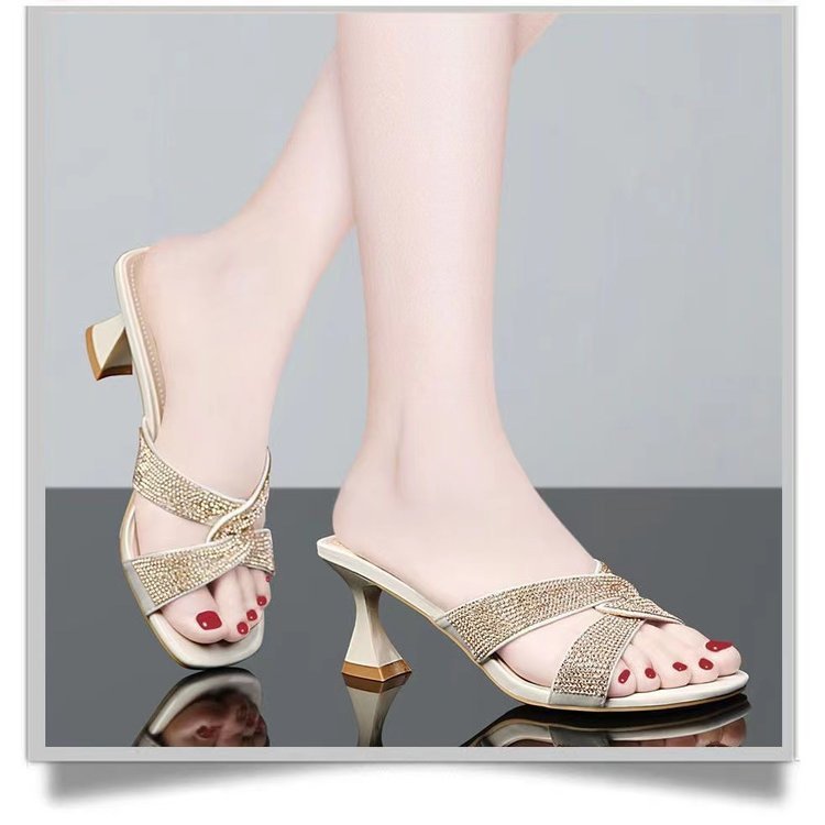 Women’s Mid Heel Slippers Fashionable Shoes For Women, Box Heel-RV1450