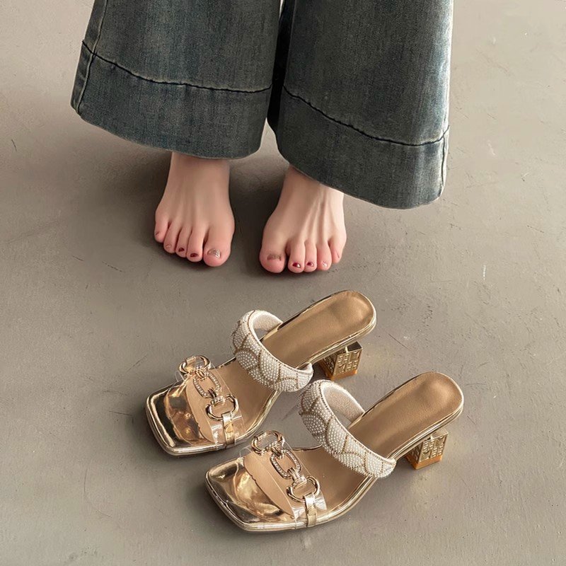 Women’s New Style Stiletto Sandals with Transparent Rhinestones, Box Heel-RV1469