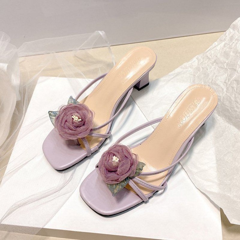 Floral Flip-Flops, Cross-Border Outdoor High Heels, Chunky Heel Women’s Shoes, Box Heel – RV1525