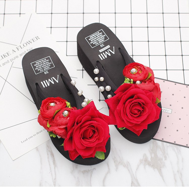Flower Flip-Flops Women’s summer Beach Shoes, Balanced Heel – RV715