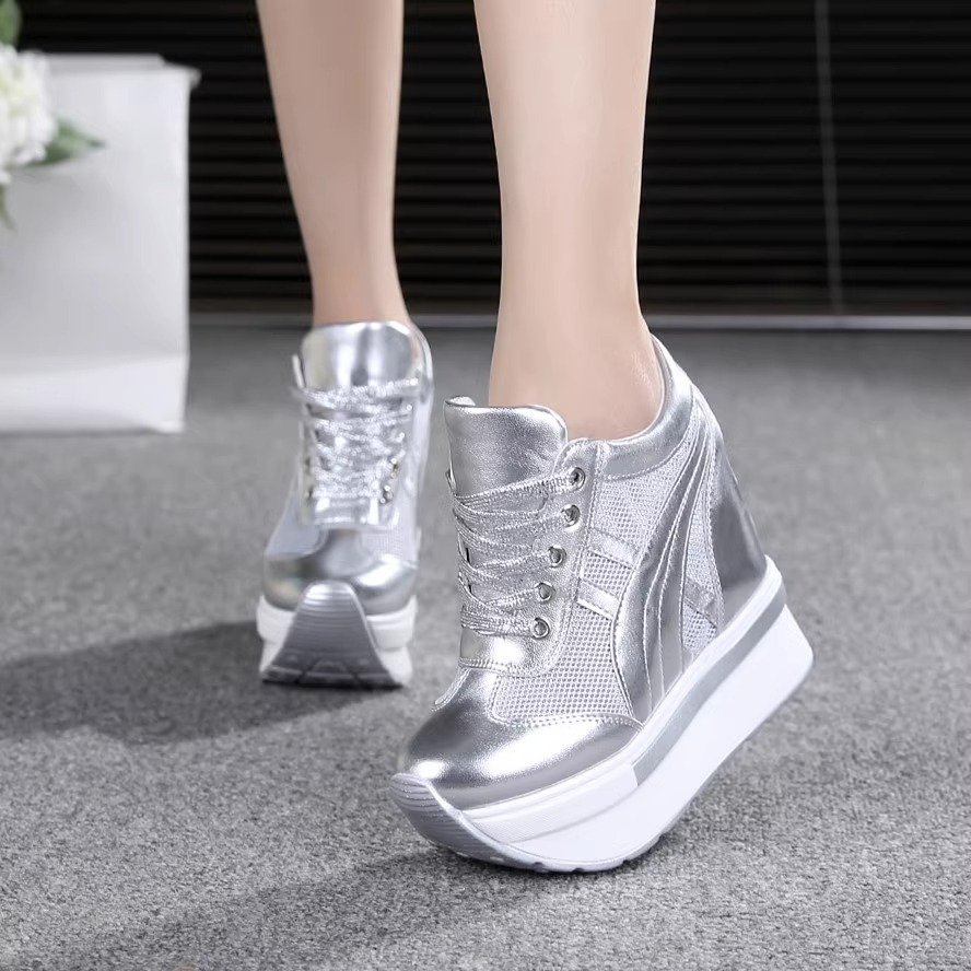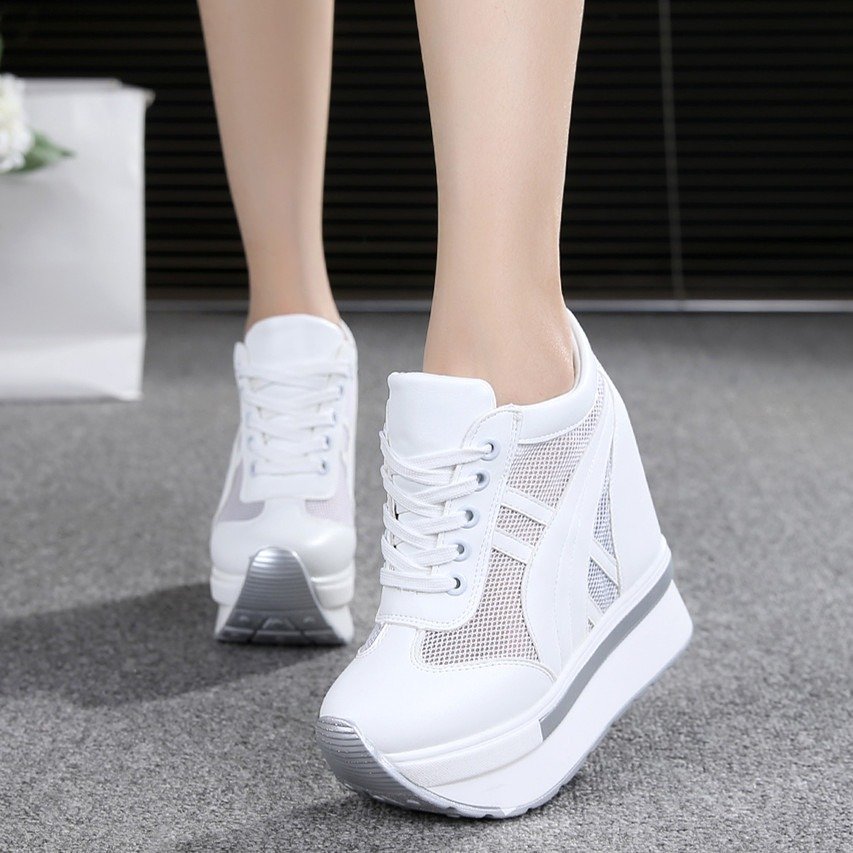 Women’s white Sneakers, mesh Breathable, with hidden wedge heel, Kades-WR63