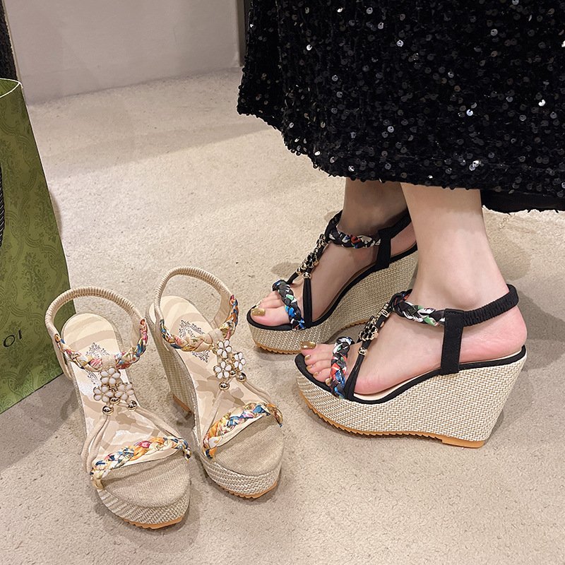 Open-toe Color-Blocked Woven Sandals For Women, Balanced Heel – RV710