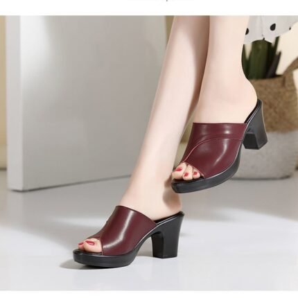 Women’s Ethnic Style High-Heeled Beach Sandals, Balanced Heel-STRV655
