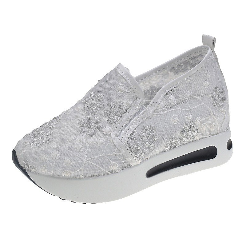 Women’s Korean Style Lace Mesh Inner Elevated Platform Bottom Casual Shoes, Kades-STWR86