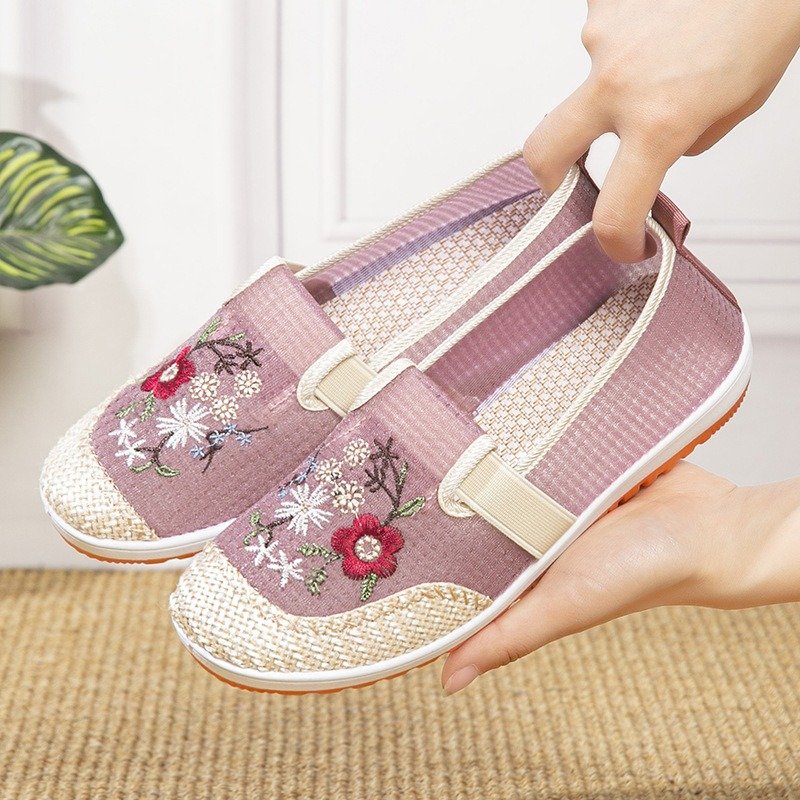 Women’s Old Beijing cloth mesh embroidered slip-on shoes. Canvas-STDS89