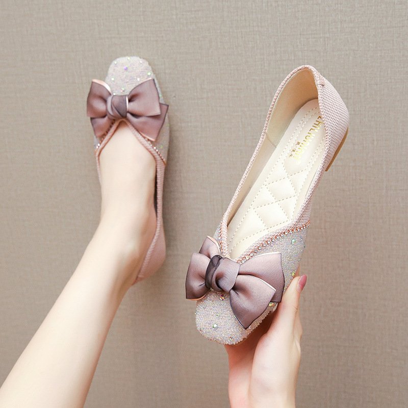 Women’s Spring New Korean Style Square Toe Loafers Flat Casual Slip-on Bow, Style Shoes – RV2591