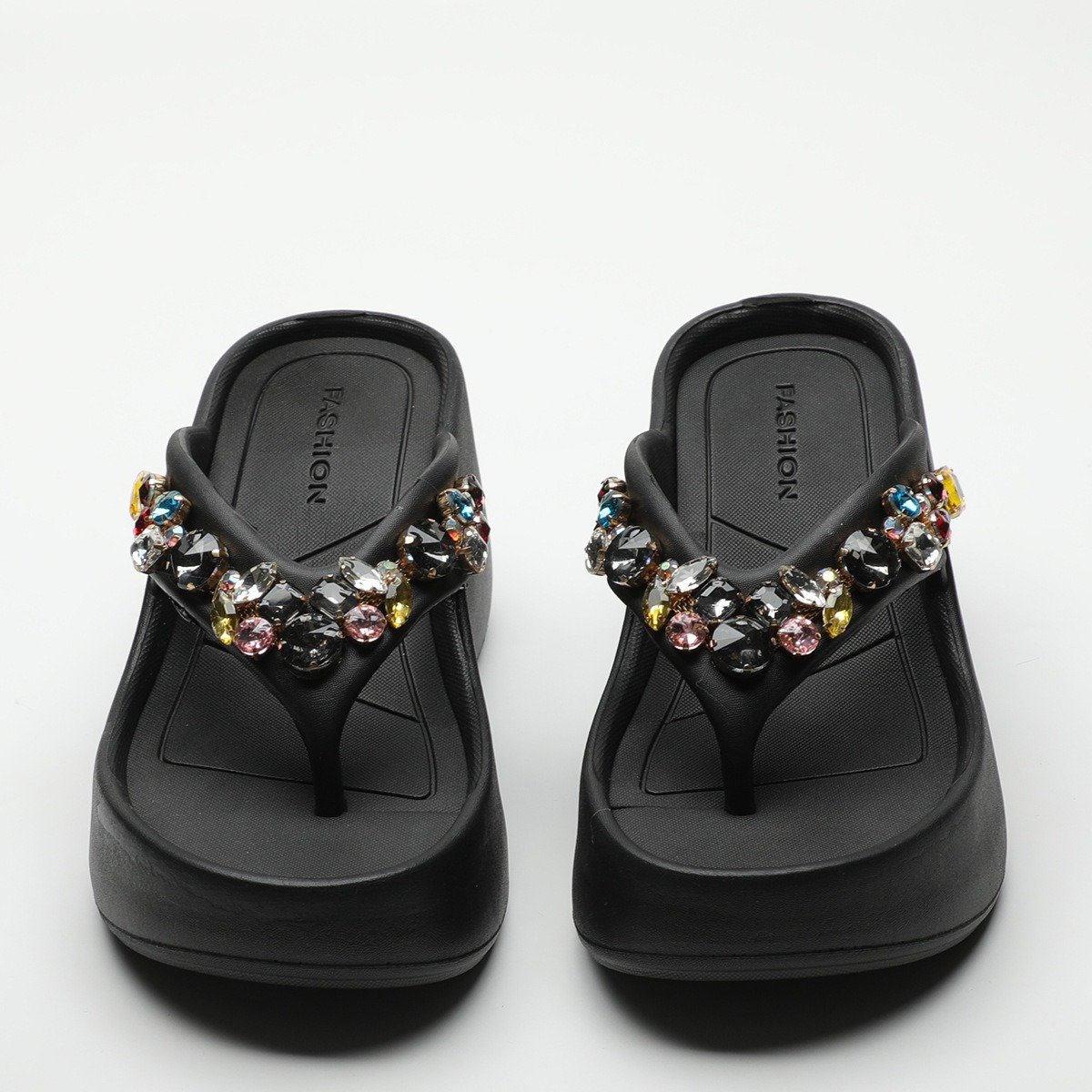 Women’s white wedge heel flip-flops with rhinestones, Balanced Heel – RV730