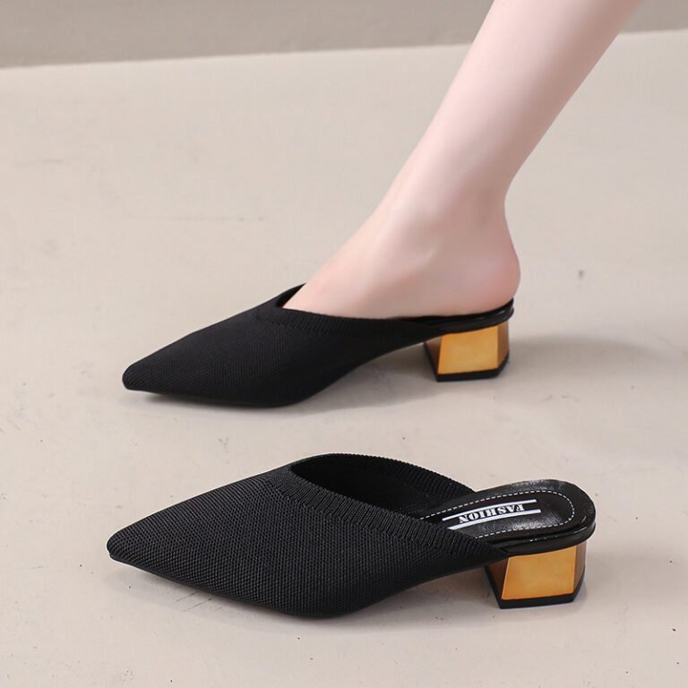 Korean Style Women’s Fly-Woven Mid-Heel Shoes, Box Heel-RV1455