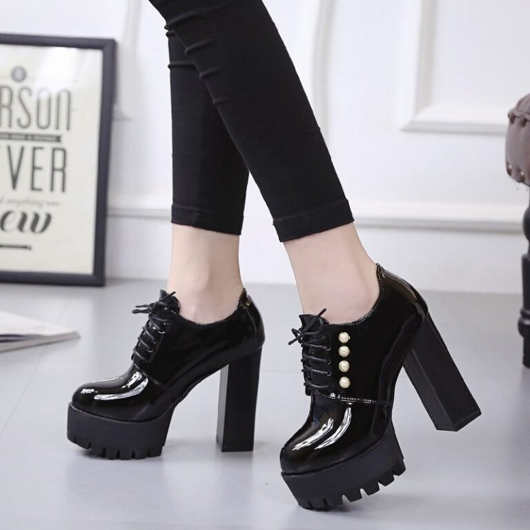 Chunky Heel Round Toe Lace-up Women’s Shoes, Boot Shoes-STWR79